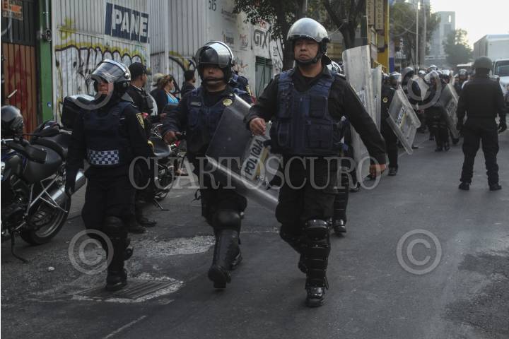 MÉXICO, D.F., 05OCTUBRE2015.- Cientos de granaderos llegaron a la avenida Observatorio para desplegar a un grupo de vecinos de la delegación Álvaro Obregón quienes se manifestaban bloqueando el paso de los vehículos, exigiendo información sobre la construcción del tren Interurbano. FOTO: ISABEL MATEOS /CUARTOSCURO.COM
