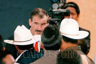 Vicente Fox Quesada, jefe del ejecutivo federal sale del salón Adolfo López Mateos, donde minutos antes encabezó la Instalación del Consejo Mexicano para el Desarrollo Rural. FOTO: Victoria Valtierra/CUARTOSCURO.COM