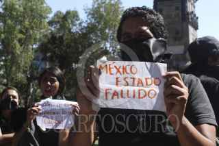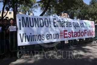 MÉXICO, D.F., 06OCTUBRE2015.- Un grupo de jóvenes se manifestaron en las inmediaciones de la Biblioteca de México donde se llevo a cabo la inauguración de la Segunda Reunión de la Conferencia Regional sobre Población y Desarrollo de América Latina y el Caribe. Los jóvenes mostraban con leyendas como CEPAL no me representa y México estado fallido a los invitados al evento como forma de protesta ante la impunidad ante los crímenes a derechos humanos sin resolver en el país. FOTO: ISABEL MATEOS /CUARTOSCURO.COM