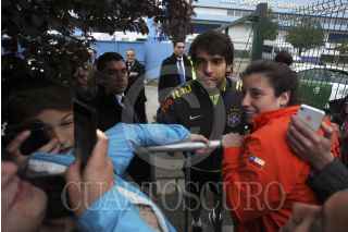 SANTIAGO, CHILE., 06OCTUBRE2015.- La selección brasileña se preparó en el estadio San Carlos de Apoquindo previo a su encuentro de clasificación para Rusia 2018, que sostendrá contra la selección nacional de Chile el próximo jueves. El cuerpo técnico y jugadores sostuvieron un encuentro con la Cruz Roja chilena y con los damnificados del pasado terremoto y tsunami que dañó la Región de Coquimbo. La verdeamarela y sus estrellas ofrecieron sus camisetas en apoyo a la población afectada. En la imagen el centro campista Kaká. FOTO: FÉLIX MÁRQUEZ /CUARTOSCURO.COM