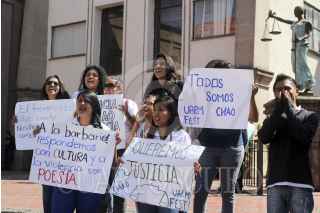 CUERNAVACA, MORELOS, 07OCTUBRE2015.- Estudiantes de la Universidad Autónoma del Estado de Morelos (UAEM), se manifestaron en las instalaciones del Palacio de Justicia donde gritaron consignas pidiendo Justicia en el caso del asesinato del investigador y catedrático Alejandro Chao Barona y su esposa Sara Robledo en el mes de mayo del 2014. FOTO: PATRICIA MORALES /CUARTOSCURO.COM
