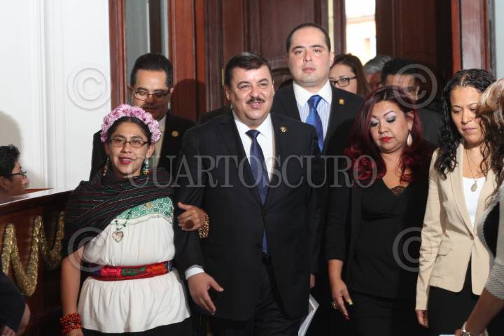 MÉXICO, D.F., 08OCTUBRE2015.- Hiram Almeida, secretario de Seguridad Pública, rindió su comparecencia ante el pleno de la Asamblea Legislativa. Durante la comparecencia ahondó en el tema del presupuesto que la secretaria ha destinado para reducir el alza de asaltos en vía pública. Índices de homicidio, secuestro, violación y robo, fueron otros temas que el secretario incluyó en su comparecencia. En la imagen, diputados de Morena salieron de la sesión en la que el secretario de Seguridad Pública Hiram Almeida presentaba su comparecencia. FOTO: MARÍA JOSÉ MARTÍNEZ /CUARTOSCURO.COM
