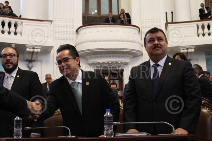 MÉXICO, D.F., 08OCTUBRE2015.- Hiram Almeida, secretario de Seguridad Pública, rindió su comparecencia ante el pleno de la Asamblea Legislativa. Durante la comparecencia ahondó en el tema del presupuesto que la secretaria ha destinado para reducir el alza de asaltos en vía pública. Índices de homicidio, secuestro, violación y robo, fueron otros temas que el secretario incluyó en su comparecencia. En la imagen, diputados de Morena salieron de la sesión en la que el secretario de Seguridad Pública Hiram Almeida presentaba su comparecencia. FOTO: MARÍA JOSÉ MARTÍNEZ /CUARTOSCURO.COM