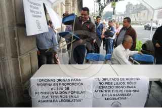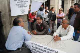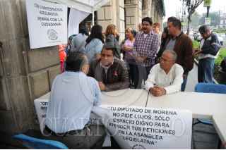 MÉXICO, D.F., 09OCTUBRE2015.- Paulo Cesar Martínez López, diputado de Morena, protestó a las afueras de las oficinas de la ALDF donde atendió a habitantes de la Ciudad de México en una mesa en la acera de la plaza de la constitución debido a que no le fue asignada una oficina para atender peticiones. FOTO: SAÚL LÓPEZ /CUARTOSCURO.COM