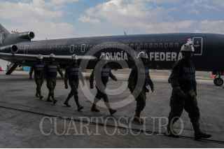 MÉXICO, D.F., 09OCTUBRE2015.- Arriban a la Ciudad de México abordo de un avión de la Policía Federal los rescatistas del Ejercito Mexicano, Armada de México y Policía Federal que apoyaron con labores de rescate en el alud que se origino en la comunidad del Cambray II en Guatemala y que dejo un saldo de más de 250 victimas. FOTO: SAÚL LÓPEZ /CUARTOSCURO.COM