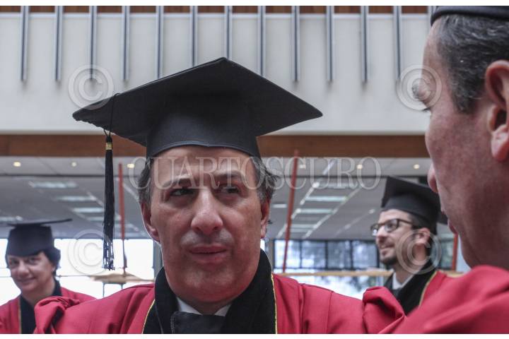 MÉXICO, D.F., 10OCTUBRE2015.- José Antonio Meade, secretario de Desarrollo Social, acudió como invitado de honor a la graduación de más de 200 alumnos de la Universidad Anáhuac, de la cual el secretario también es graduado. Al final de la cermonia recibió un reconocimiento por parte de las autoridades de la institución educativa. FOTO: MARÍA JOSÉ MARTÍNEZ /CUARTOSCURO.COM