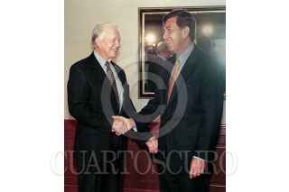 James Carter presidente de Centro Carten que realiza trabajos de observacion en las elecciones se reunio con Cuauhtemoc Cardenas candidato presidencial del PRD , donde conversaron sobre la funcion del programa Progresa en apoyo al PRI. FOTO: Inti Vargas/CUARTOSCURO.COM