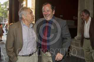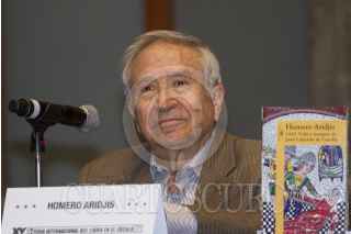 MÉXICO, D.F., 12OCTUBRE2015.- El escritor Homero Aridjis recibió un homenaje por sus 75 años de vida en una ceremonia dónde también presentó la reedición de sus libros "1492. Vida y tiempos de Juan Cabezón de Castilla" y "Mirándola dormir. Perséfone", en el Museo de la ciudad de México, sede alterna de la Feria Internacional del Libro en el Zocalo. FOTO: ISAAC ESQUIVEL /CUARTOSCURO.COM