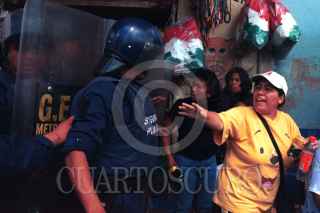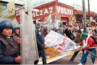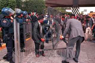 Elementos del cuerpo de granaderos bloquearon el paso a manifestantes en las cercanias del Congreso de la Unión. FOTO:David Bolaños/CUARTOSCURO.COM
