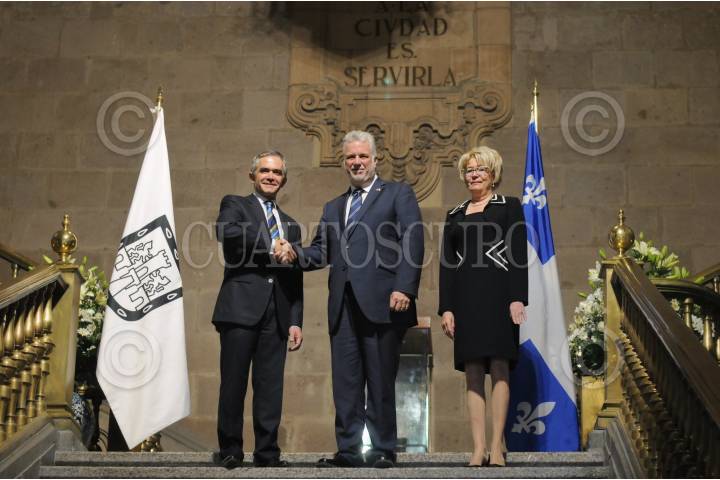 MEXICO, D.F., 13OCTUBRE2015.- Miguel Ángel Mancera Espinosa, jefe de Gobierno de la Ciudad de México, presidió la ceremonia de Huésped Distinguido al Sr. Philippe Couillard, Primer Ministro de Quebec, Canada, y la Firma de Declaración Conjunta Quebec-DF en el Salón de Cabildos del Antiguo Palacio del Ayuntamiento. FOTO: DIEGO SIMÓN SÁNCHEZ /CUARTOSCURO.COM