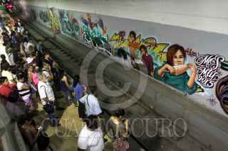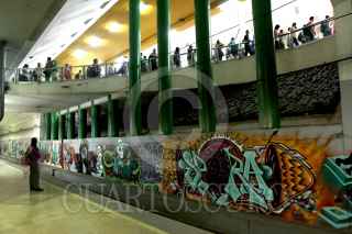 MONTERREY, NUEVO LEÓN, 13OCTUBRE2015.- La estación del metro Cuahutemoc en Monterrey, fue sede de expresión de grafiti como parte de las actividades del Festival Internacional “Meeting of Styles” 2015 donde artistas urbanos nacionales e internacionales muestran su arte en murales de diferentes partes del mundo. FOTO: GABRIELA PÉREZ MONTIEL / CUARTOSCURO.COM