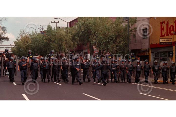 Elementos del cuerpo de granaderos bloquearon el paso a manifestantes en las cercanias del Congreso de la Unión. FOTO:David Bolaños/CUARTOSCURO.COM