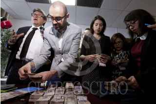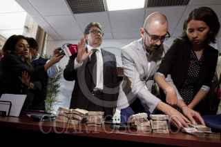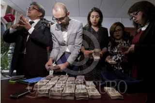 MÉXICO, D.F., 13OCTUBRE2015.- Un sujeto desconocido entregó ayer a Ricardo Monreal, delegado de Cuauhtémoc, una bolsa con un millón 600 mil pesos en su interior. El dinero estaba envuelto en ligas con el nombre de una institución bancaria. El jefe delegacional hizo un llamado a los comerciantes para que denuncien cualquier tipo de extorsión de algún funcionario público que tuviera que ver con la entrega de aquel paquete. FOTO: ARMANDO MONROY /CUARTOSCURO.COM