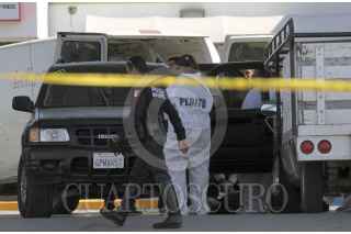 TIJUANA, BAJA CALIFORNIA,13OCTUBRE2015.- A escasos metros de una Estación de la Policía Municipal en la delegación de Otay se registró un enfrentamiento a balazos entre agentes municipales y presuntos delincuentes que previamente habían asesinado a una persona que se encontraba en una estación de gasolina. De acuerdo a información oficial, un delincuente fue lesionado en un brazo tras el tiroteo y el otro resultó ileso, ambos se encuentran detenidos. A la escena del crimen acudieron oficiales de la Policía Ministerial y Federal, quienes resguardaron el área hasta que personal del Servicio Médico Forense levantó el cuerpo. FOTO: CHRISTIAN SERNA /CUARTOSCURO.COM