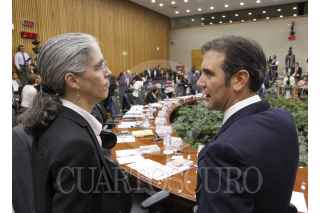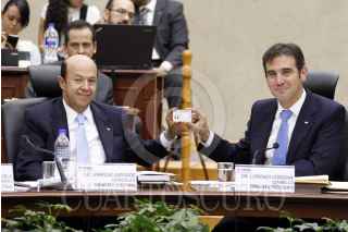 MÉXICO, D.F., 14OCTUBRE2015.- El consejero electoral Enrique Andrade González y el consejero presidente Lorenzo Córdova Vianello muestran la nueva credencial de elector que podrán utilizar los mexicanos en el extranjero para votar en las elecciones durante la próxima elección presidencial que se llevará a cabo en el 2018. FOTO: INE /CUARTOSCURO.COM