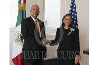MÉXICO, D.F., 14OCTUBRE2015.- La Secretaria de Relaciones Exteriores, Claudia Ruiz Massieu, encabezó un almuerzo de trabajo con el Secretario de Seguridad Interna de Estados Unidos, Jeh Johnson, en el marco de la visita a México que realiza el 14 y 15 de octubre. Durante el almuerzo abordaron distintos temas de la agenda bilateral en materia fronteriza, que permitirán facilitar el comercio mediante proyectos bilaterales innovadores, así como la movilidad de personas en América del Norte. FOTO: SRE /CUARTOSCURO.COM