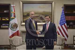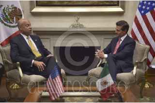 MÉXICO, D.F., 14OCTUBRE2015.- El Presidente Enrique Peña Nieto se reunió esta noche en la Residencia Oficial de Los Pinos con el Secretario de Seguridad Interna de los Estados Unidos de América, Jeh Johnson. En el encuentro, el Primer Mandatario celebró la relación de confianza mutua y de cooperación productiva con el Gobierno del Presidente Barack Obama. FOTO: PRESIDENCIA /CUARTOSCURO.COM