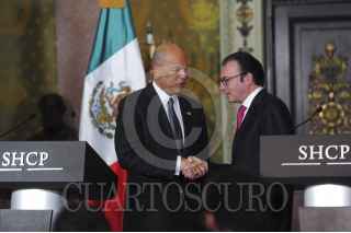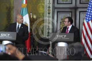 MÉXICO, D.F., 15OCTUBRE2015.- Luis Videgaray, secretario de Hacienda y Crédito Público, y Jeh Johnson, secretario de Seguridad Nacional de Estados Unido, firmaron un convenio entre ambas instituciones, en el Salón Panamericano FOTO: ARMANDO MONROY /CUARTOSCURO.COM