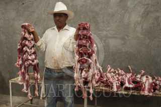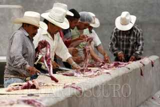 TEHUACÁN, PUEBLA., 16OCTUBRE2015.- Inicia el sacrificio en rastros y mataderos durante esta temporada para la preparación del tradicional Mole de Caderas en el municipio de Tehuacán, Puebla; según la tradición a los animales se les mantiene pastando y consumiendo sal durante todo un año para que la carne y el hueso obtengan el sabor que hace característico a este platillo de origen español y oriundo de Puebla y Oaxaca. FOTO: HILDA RÍOS/ CUARTOSCURO.COM