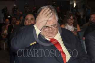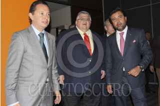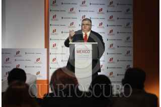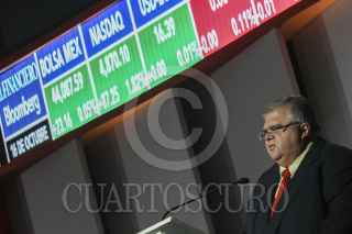 MÉXICO, D.F., 16OCTUBRE2015.- Agustín Carstens Carstens, gobernador del Banco de México, ofreció un mensaje ante la audiencia del Foro Financiero del diario "El Financiero". En dicho mensaje mencionó que "México construye fortalezas que lo harán diferenciarse". Al término de la ponencia, Ximena de la Mora, comisionada presidenta del INAI brindó una charla ante los asitentes del evento. En la imagen, Agustín Carstens, gobernador de Banxico, y Fernando Solís Camarena, director de Asuntos Corporativos y Comunicación de El Financiero. FOTO: MARÍA JOSÉ MARTÍNEZ /CUARTOSCURO.COM