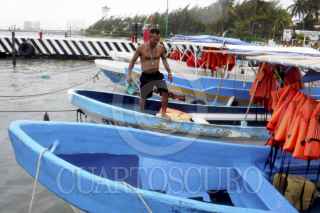 CANCÚN, QUNTANA ROO, 16OCTUBRE2015.- La onda tropical número 43 ha provocado fuertes lluvias en la entidad, el puerto a la navegación menor ha sido cerrado, las playas lucen vacías debido al mal tiempo. FOTO: ELIZABETH RUIZ/CUARTOSCURO.COM