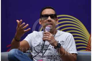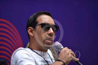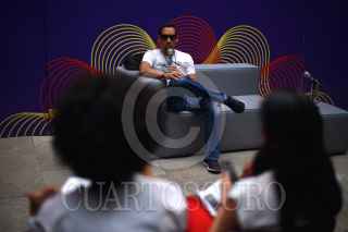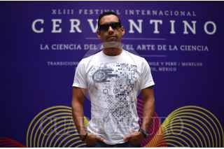 GUANAJUATO, GUANAJUATO, 17OCTUBRE2015.- Antonio Sánchez, baterista mexicano reconocido internacionalmente por la composición de la banda sonora de "Birdman", durante la conferencia de prensa. Sánchez presentará esta noche su nuevo material discográfico "The meridian suit" junto con su banda Migration en la explanada de la Alhóndiga como parte de la edición XLIII del Festival Internacional Cervantino 2015 "La ciencia del arte / El arte de la ciencia". FOTO: ADOLFO VLADIMIR /CUARTOSCURO.COM