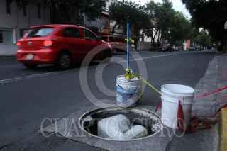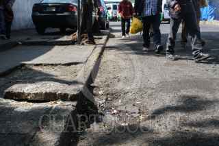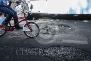 MÉXICO, D.F, 17OCTUBRE2015.- A pesar de que el jefe de gobierno Miguel Ángel Mancera anunciara hace más de tres meses una inversión de 683 millones de pesos para el recarpeteo y reparación de baches en la ciudad, no se ven grandes avances en el Distrito Federal para solucionar este problema que, más que un inconveniente para los automovilistas, hace de las calles una zona de riesgo para conductores, ciclistas y peatones. Automóviles dañados, accidentes viales, ciclistas tirados en el asfalto y algunos peatones con torceduras o fracturas a causa del mal estado de las calles de esta gran urbe son eventos cotidianos en la vida de los habitantes de esta ciudad. FOTO: ISABEL MATEOS /CUARTOSCURO.COM