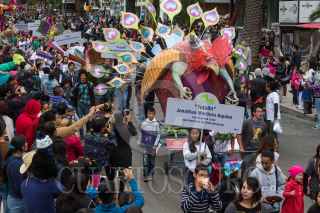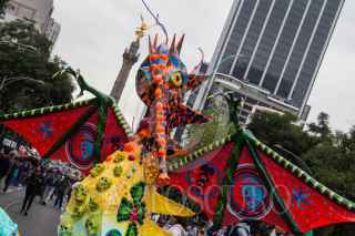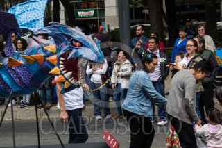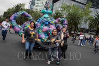 MEXICO, D.F., 17OCTUBRE2015.- Al ritmo de bandas de viento y batucadas, 221 alebrijes de todos los tamaños, formas y colores, participaron en el 9no Desfile de Alebrijes Monumentales, organizado por el Museo de Arte Popular. El desfile inició en la plancha del Zócalo Capitalino para culminar en el Ángel de Independencia, donde permanecerán una semana sobre las aceras de Paseo de la Reforma para su exhibición. FOTO: DAVID POLO /CUARTOSCURO.COM