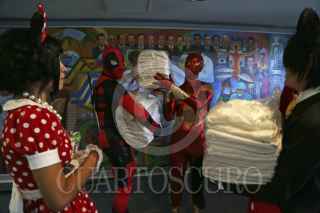 VERACRUZ, VER., 18OCTUBRE2015.- La asociación civil "Mechones de Esperanza" realizó una visita a niños con cáncer en el Hospital Regional; vestidos de super héroes y princesas entregaron jugos y sábanas para tratar de generar un cambio positivo en las preocupaciones diarias de padres e hijos dentro del nosocomio. FOTO: ILSE HUESCA /CUARTOSCURO.COM
