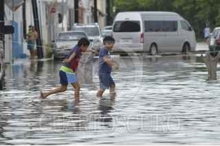 CANCUN,QROO18OCTUBRE2015.- La onda tropical 44 ha afectado la zona turistica con la suspensión de todas las actividades acuáticas mientras en la ciudad la fuerte lluvia ha dejado severos encharcamientos y en algunas partes inundado como la entrada al Hospital general de Cancun asi como la colonia donceles 28 entre otras. FOTO: ELIZABETH RUIZ/CUARTOSCURO.COM