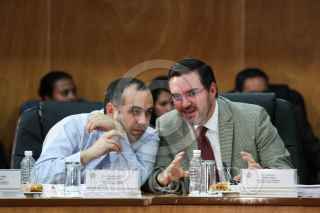 MÉXICO, D.F., 18OCTUBRE2015.- La comisión de hacienda y credito publico de la Camara de Diputados se reunió para discutir el dictamen con proyecto de decreto por el que se expide la ley de ingresos de la federación para el ejercicio fiscal del 2016. En la imagen Jorge Estefan Chirac, Mariana Benitez Tiburcio y Adriana Sarur. FOTO: ISABEL MATEOS /CUARTOSCURO.COM
