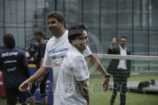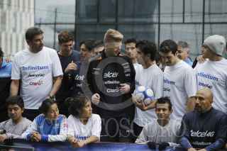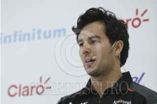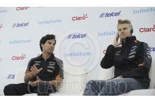 MÉXICO, D.F., 19OCTUBRE2015.- Los pilotos de Force India, el mexicano Sergio Pérez y el alemán Nico Hülkenberg, ofrecieron una rueda de prensa en la explanada del Teatro Telcel, ahí los conductores jugaron una cascarita. El "Checo" Pérez habló sobre su próxima participación en el F1 Gran Premio de México. FOTO: GABINO ACEVEDO /CUARTOSURO.COM