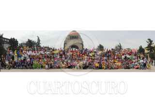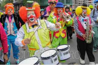 MÉXICO, D.F., 21OCTUBRE2015.- Al rededor de 200 payasos clausuraron la Vigésima Convención Internacional de Payasos con una comparsa al rededor del Monumento a la Revolución y una fotografiá panoramica con payasos del interior de la república así como de Perú, El Salvador, Honduras, República Dominicana, Guatemala, Belice, Nicaragua, Ecuador, Estados Unidos, Reino Unido. FOTO: CUARTOSCURO.COM