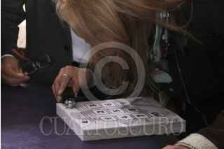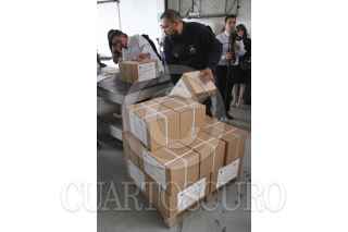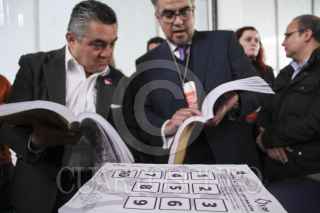 MÉXICO, D.F., 22OCTUBRE2015.- Carlos González Martínez, presidente de la Comisión de Participación Ciudadana del IEDF y Miguel Geraldo Venegas, secretario ejecutivo del IEDF, durante la entrega de papeletas electivas que se utilizarán en la Consulta Ciudadana sobre Presupuesto Participativo 2016, realizado en los Talleres Gráficos de México. FOTO: ADOLFO VLADIMIR /CUARTOSCURO.COM