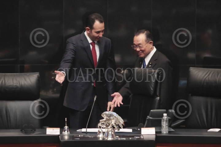 MÉXICO, D.F., 22OCTUBRE2015.- Roberto Gil Zuarth, presidente de la mesa directiva del Senado presidio la sesión solemne para recibir en el Pleno la visita del Sr. Masaaki Yamazaki, presidente de la Cámara de Consejeros de la Dieta Nacional de Japón. FOTO: CUARTOSCURO.COM