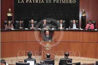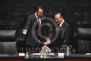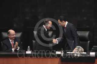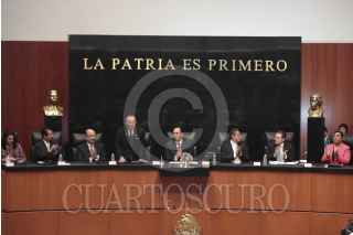 MÉXICO, D.F., 22OCTUBRE2015.- Roberto Gil Zuarth, presidente de la mesa directiva del Senado presidio la sesión solemne para recibir en el Pleno la visita del Sr. Masaaki Yamazaki, presidente de la Cámara de Consejeros de la Dieta Nacional de Japón. FOTO: CUARTOSCURO.COM