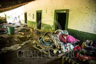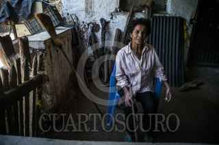 LA BORREGA, DURANGO, 22OCTUBRE2015.- Cientos de personas se desplazaron de diferentes comunidades de la sierra de Durango y Sinaloa, debido a los enfrentamientos y los fuertes operativos por parte de la secretaria de la Marina Armada de México en busca del narcotraficante Joaquin ¨El Chapo¨Guzmán, sin embargo, para Crescencio y Agustina una pareja mayor de edad, no fue lo mismo. Ellos decidieron quedarse en su pequeño rancho ubicado en la comunidad de La Borrega en el centro del denominado ¨Triángulo Dorado¨ ya que por su avanzada edad es mas difícil el traslado. Don Crescencio menciona que durante el operativo se escuchaban las ráfagas de balas del helicóptero que descendió a pocos metros de su rancho, esto provoco que algunas de sus siembras de maíz se echaran a perder así como varias laminas se desprendieran de su hogar. FOTO: RASHIDE FRIAS /CUARTOSCURO.COM