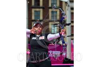 MÉXICO, D.F., 24OCTUBRE2015.- La arquera mexicana Stephanie Salas compite también en la Copa Mundial de Tiro con Arco 2015 en el Zócalo Capitalino. FOTO: MARÍA JOSÉ MARTÍNEZ /CUARTOSCURO.COM