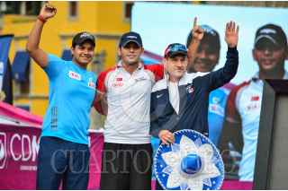 MÉXICO, D.F., 23OCTBRE2015.- En la imagen, Abhishek Verma, de India, segundo lugar; Demir Emaagacli, de Turquía, primer lugar, y el francés Dominique Genet, tercer lugar, en la Copa Mundial de Tiro con Arco 2015. Mañana se realizará la última etapa en el Zócalo capitalino. FOTO: MARÍA JOSÉ MARTÍNEZ /CUARTOSCURO.COM