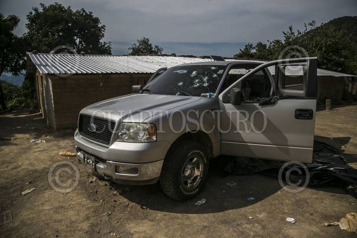 TAMAZULA, DURANGO 24OCTUBRE2015.- Debido a los operativos por parte de la Secretaria de Marina Armada México en la búsqueda del narcotraficante Joaquin ¨El Chapo¨Gúzman, en la sierra madre occidental, se observan varias rancherías dañadas así como carros incendiados producto de las ráfagas de rifles de alto poder, las principales comunidades afectadas son El Verano, Las Aguilas, El Comedero Colorado y El Limón, este ultimo se prohíbe el acceso ya que se encuentra resguardado por elementos de la Marina. Cientos de familias se han desplazado al municipio de Cosalá en espera de poder regresar a sus hogares. La Comisión de la Defensa de los Derechos Humanos de Sinaloa realizo un recorrido para registrar los hechos ocurridos. FOTO: RASHIDE FRIAS / CUARTOSCURO.COM