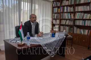 MEXICO, D.F., 24OCTUBRE2015.- El embajador Mohamedd Sadaat de Gaza ofreció un mensaje en la embajada de Palestina para informar sobre las medidas pacíficas que van a emplear para resistir a las amenazas y ataques israelíes en Gaza y Cisjordania. Durante la reunión convocada, miembros de distintas organizaciones sociales y de la sociedad civil comenzaron a organizar un comité de solidaridad con Palestina. El embajador señaló que el conflicto en Medio Oriente con Israel no tiene que ver con otra cosa que con los intereses expansionistas del sionismo, por lo que lucharan contra la injusticia y la impunidad con que actúa Israel. En la imagen, Mohamed Sadaat de Gaza. FOTO: DAVID POLO /CUARTOSCURO.COM