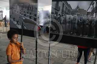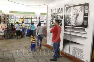 OAXACA, OAXACA, 25OCTUBRE2015.- Este fin de semana se inauguró la 35 edición de la Feria Internacional del Libro de Oaxaca (Filo) en el zócalo de la ciudad, con diversos invitados, presentaciones de libros y exposiciones, entre estas, fue montada una galería fotográfica por parte de la Comisión de la Verdad de Oaxaca en la que se muestran fragmentos de los hechos ocurridos durante el conflicto político social del 2006 con placas de Antonio Turok, Luis Alberto Cruz y Darío Nolasco, entre otros. FOTO: ARTURO PÉREZ ALFONSO /CUARTOSCURO.COM