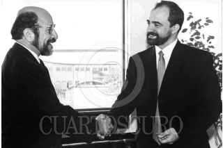 Luis de la Barreda Solorzano entrega las llaves al nuevo presidente de la Comisión de Derechos Humanos del D.F Emilio Alvarez Icaza. FOTO:Especial Cuartoscuro/CUARTOSCURO.COM