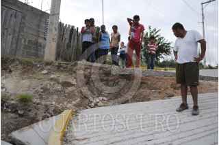 CHILPANCINGO, GUERRERO, 25OCTUBRE2015.- Diecisiete familias fueron evacuadas de sus viviendas que sufrieron daños la madrugada de este domingo, cuando la calle principal de la colonia “Héroes de Guerrero” sufrió agrietamientos. Al lugar acudió protección civil y alumnos de psicología de la UAGro que se ofrecieron como voluntarios; la zona esta acordonada y vigilada por la policía municipal y estatal, asimismo, las familias desalojadas fueron trasladadas a un albergue. FOTO: JOSÉ I. HERNÁNDEZ /CUARTOSCURO.COM