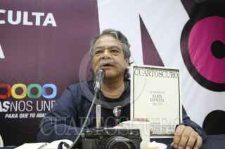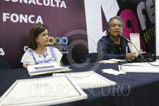 TUXTLA GUTIÉRREZ, CHIAPAS, 27OCTUBRE2015.- Ana Luisa Anza y Pedro Valtierra, coordinadora editorial y director de Cuartoscuro, respectivamente, presentaron el número 134 de la Revista Cuartoscuro, en el marco de la 4a Feria del Libro de la Universidad Autónoma de Chiapas. Esta edición esta dedicada In Memoriam al fotoperiodista Rubén Espinosa, quien fue asesinado, junto con otras cuatro mujeres; Nadia Vera, Yesenia Quiroz, Mile Virginia Martín y Alejandra Negrete, en un departamento de la colonia Narvarte, el 31 de julio. FOTO: JACOB GARCÍA /CUARTOSCURO.COM