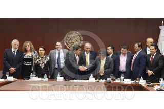 MÉXICO, D.F., 27OCTUBRE2015.- Los coordinadores del PRD, Miguel Ángel Barbosa, Senado y Francisco Martínez Neri, Cámara de Diputados, encabezaron una reunión con los senadores perredistas para analizar el paquete económico 2016. FOTO: CUARTOSCURO.COM