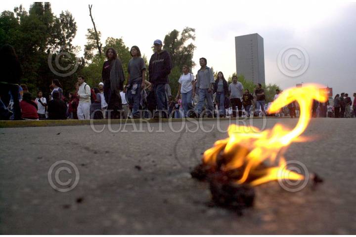 Un tanque hecho de cartón por estudiantes de la UNAM, sirvió como recuerdo de las tanquetas que en 1968, tomaran la Plaza de la Constitución; solo que esta vez el resultado fue otro. FOTO: David Bolaños/CUARTOSCURO.COM