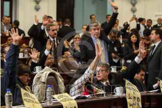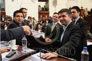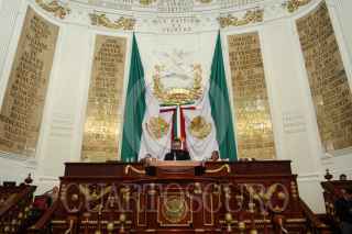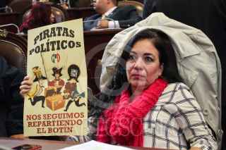MÈXICO, D.F., 27OCTUBRE2015.- Víctor Hugo Romo, ex delegado de la delegación Miguel Hidalgo y ahora diputado en la Asamblea Legislativa del Distrito Federal, impulso la iniciativa en pro de la legalización de la marihuana en la ciudad por sus beneficios medicinales y la posible disminución de la violencia por el narcotráfico. En la imagen la diputada Maria Eugenia Lozano Torres con una pancarta de protesta durante la sesión en la asamblea. FOTO: ISABEL MATEOS /CUARTOSCURO.COM