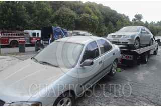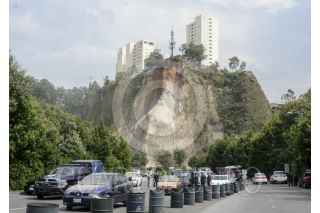 MÉXICO, D.F., 27OCTUBRE2015.- Se registro un derrumbe donde se ubica una antena de la telefonía Iusacell, por lo que parte de la tierra cayó en el estacionamiento del club de golf Granada ubicado en la avenida Luis Barragán y Tamaulipas en Santa Fe, tapando varios autos los cuales fueron retirados por bomberos y grúas. FOTO: ARMANDO MONROY /CUARTOSCURO.COM