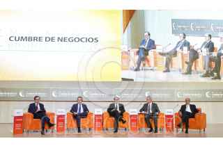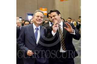 GUADALAJARA, JALISCO.- El Secretario de Energía, Lic. Pedro Joaquín Coldwell; durante una gira de trabajo al estado de Jalisco, participó en la "México Cumbre de Negocios 2015", foro al que convoca a empresarios nacionales e internacionales a discusiones sobre economía y negocios. El Secretario Joaquín Coldwell habló sobre las oportunidades que tiene Petróleos Mexicanos (Pemex) al poderse asociar con otras empresas del sector energético para la exploración y extracción de hidrocarburos. También participaron; Stephen Greenle (Exxon Mobil Exploration), Luis Vázquez (Grupo Diavaz) y Alberto Bello (Grupo Expansión). En la imagen, el gobernador del estado, Aristoteles Sandoval. FOTO: CUARTOSCURO.COM